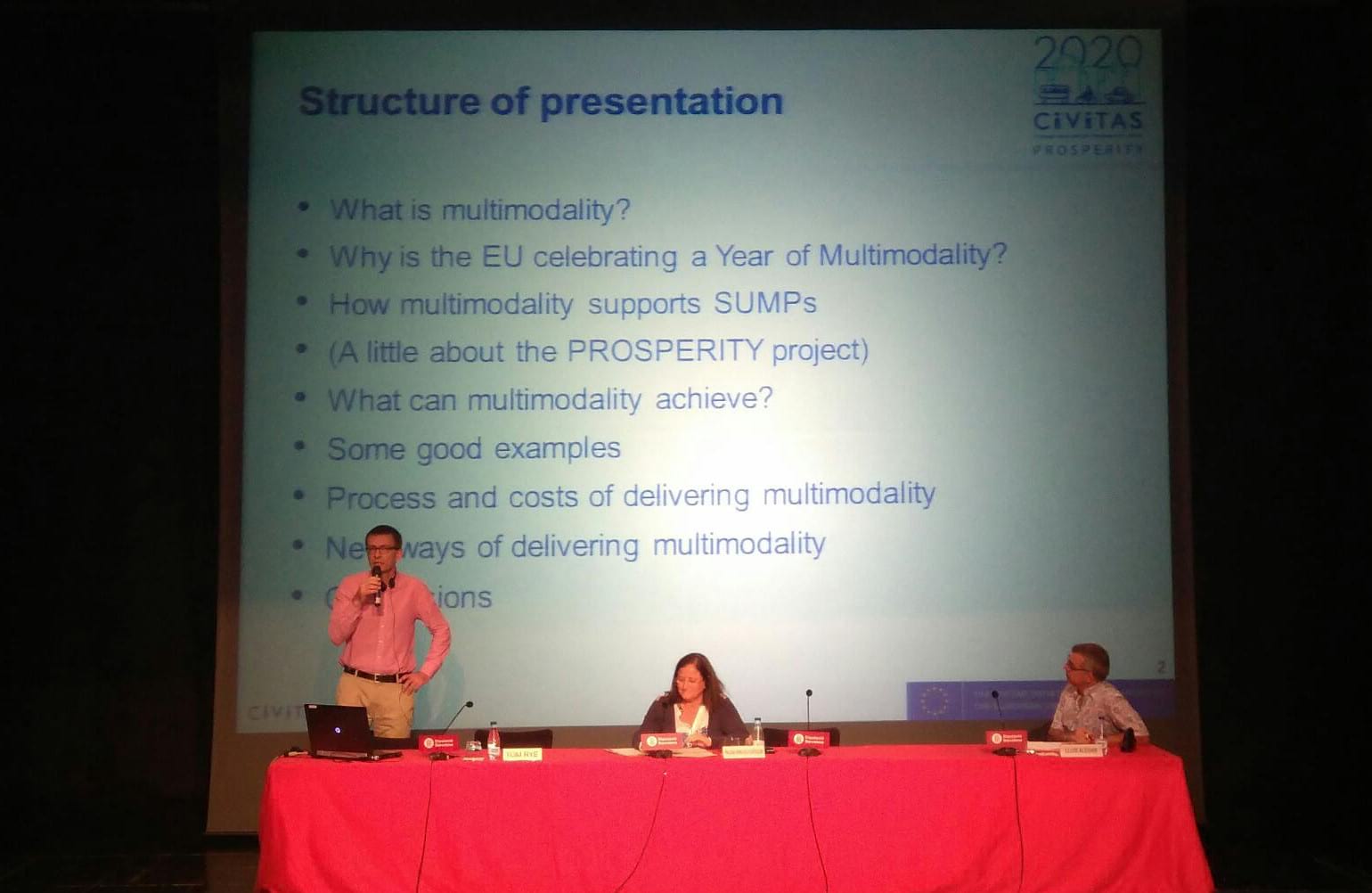 La primera presentació de la jornada va anar a càrrec del Sr. Tom Rye, professor de Transport i director del Transport Research Institute (Edinburgh Napier University). Com a ponent marc, va presentar, abans que res, una definició pel concepte de multimodalitat, fent una petita diferenciació del concepte intermodalitat: