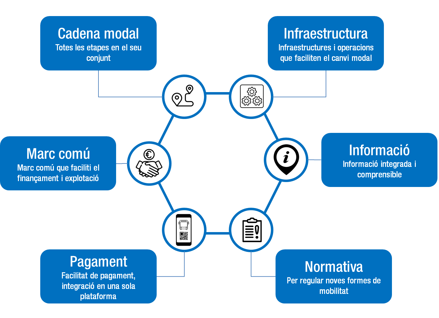 Multimodalitat: Facilitat que un sol viatge es pugui planificar, usar i pagar mitjançant diferents modes de transport.