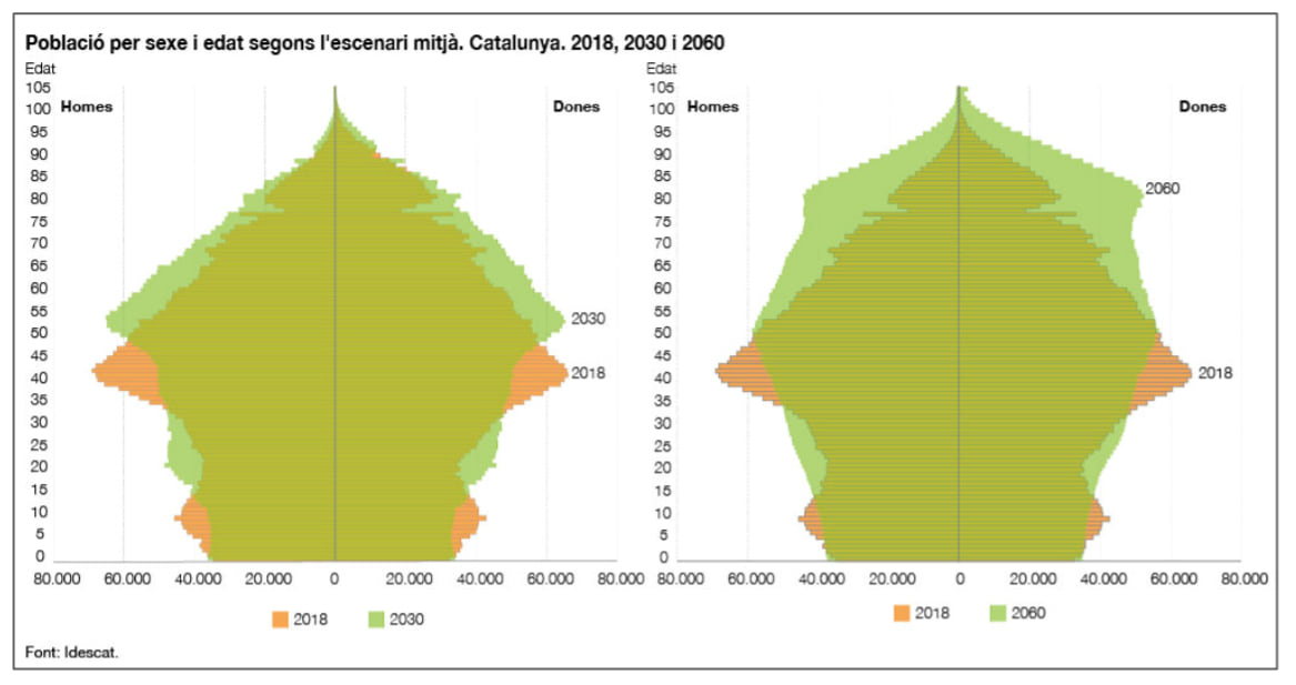 El 9% (688.632) de la població catalana té més de 75 anys i s'espera que l'any 2030 sigui el 12% (860.666)