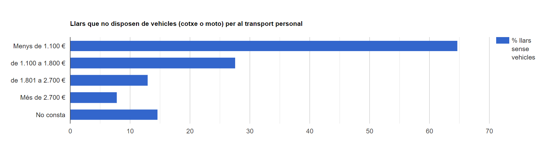 | Nivell d'ingressos | Llars sense vehicle (cotxe o moto) per desplaçament personal |