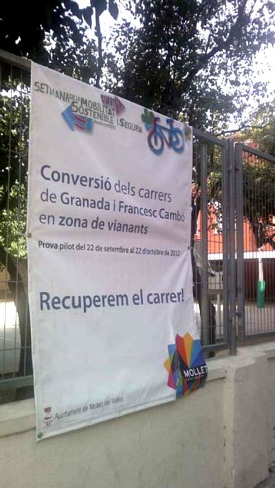 Aprofitant la Setmana de la Mobilitat Sostenible l'Ajuntament de Mollet del Vallès va realitzar una prova pilot en un carrer per a convertir-lo en un carrer de prioritat per a vianants amb actuacions d'urbanisme tàctic.
