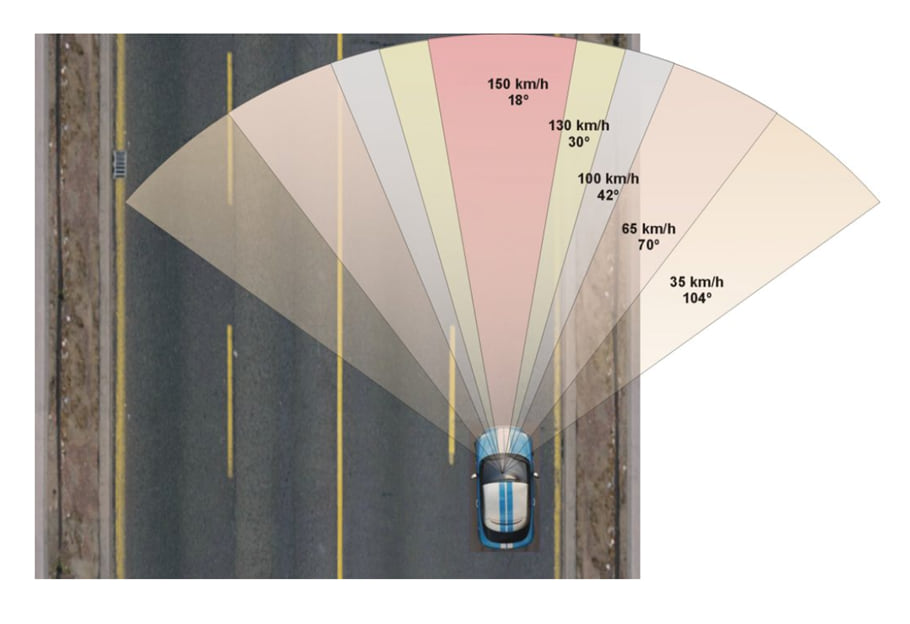 Un altre efecte conegut i estudiat és que a menor velocitat augmentem el camp visual, cosa que ens permet percebre allò que succeeix al voltant del vehicle i no just al davant. Aquest fet és de vital importància pel que fa a la seguretat viària en l’àmbit urbà, on la mobilitat és molt dinàmica, amb moltes interaccions de vehicles i vianants de totes bandes del vehicle.